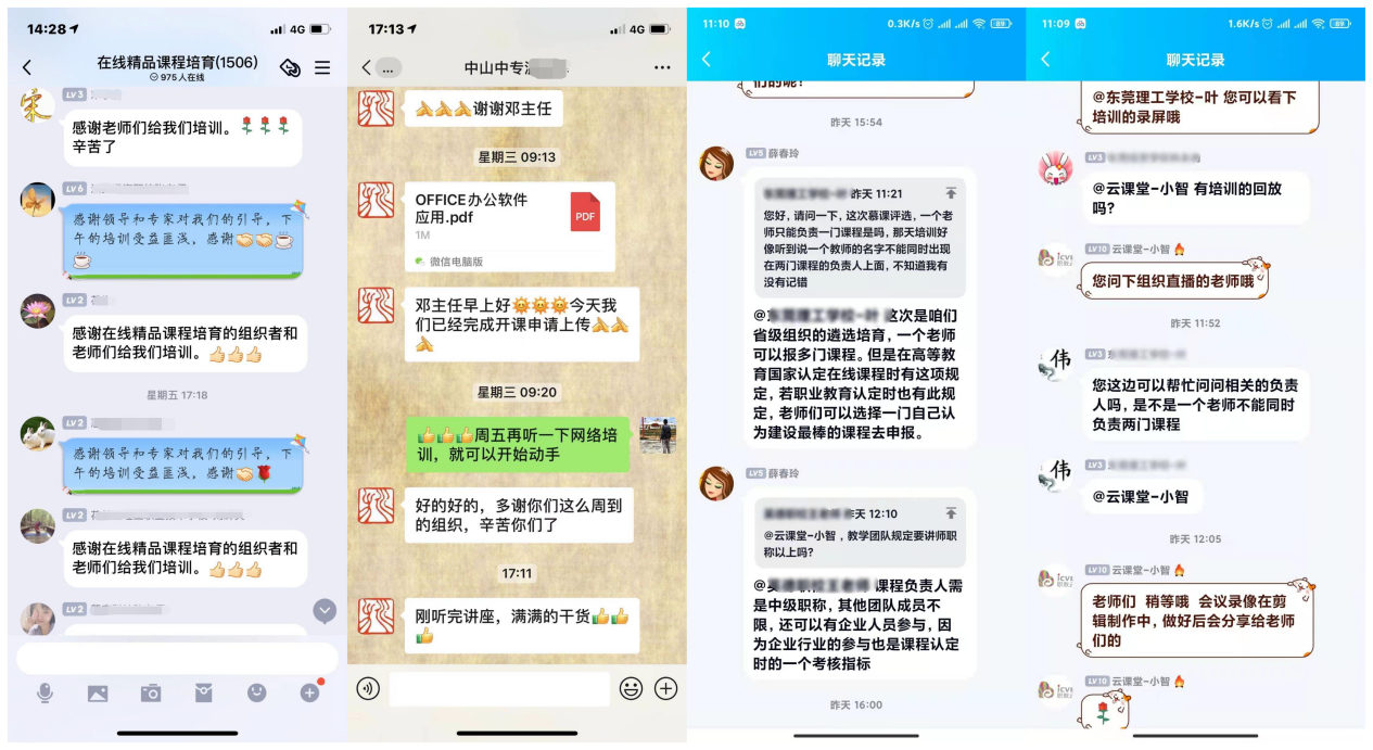 本次培训活动“干货”满满,教师们纷纷表示受益匪浅,已陆续登录“智慧职教”平台建设课程,并加入在线精品课程培育QQ群(168678500),重温课程建设硬核知识,与专家、同仁们共同探讨,深入交流。