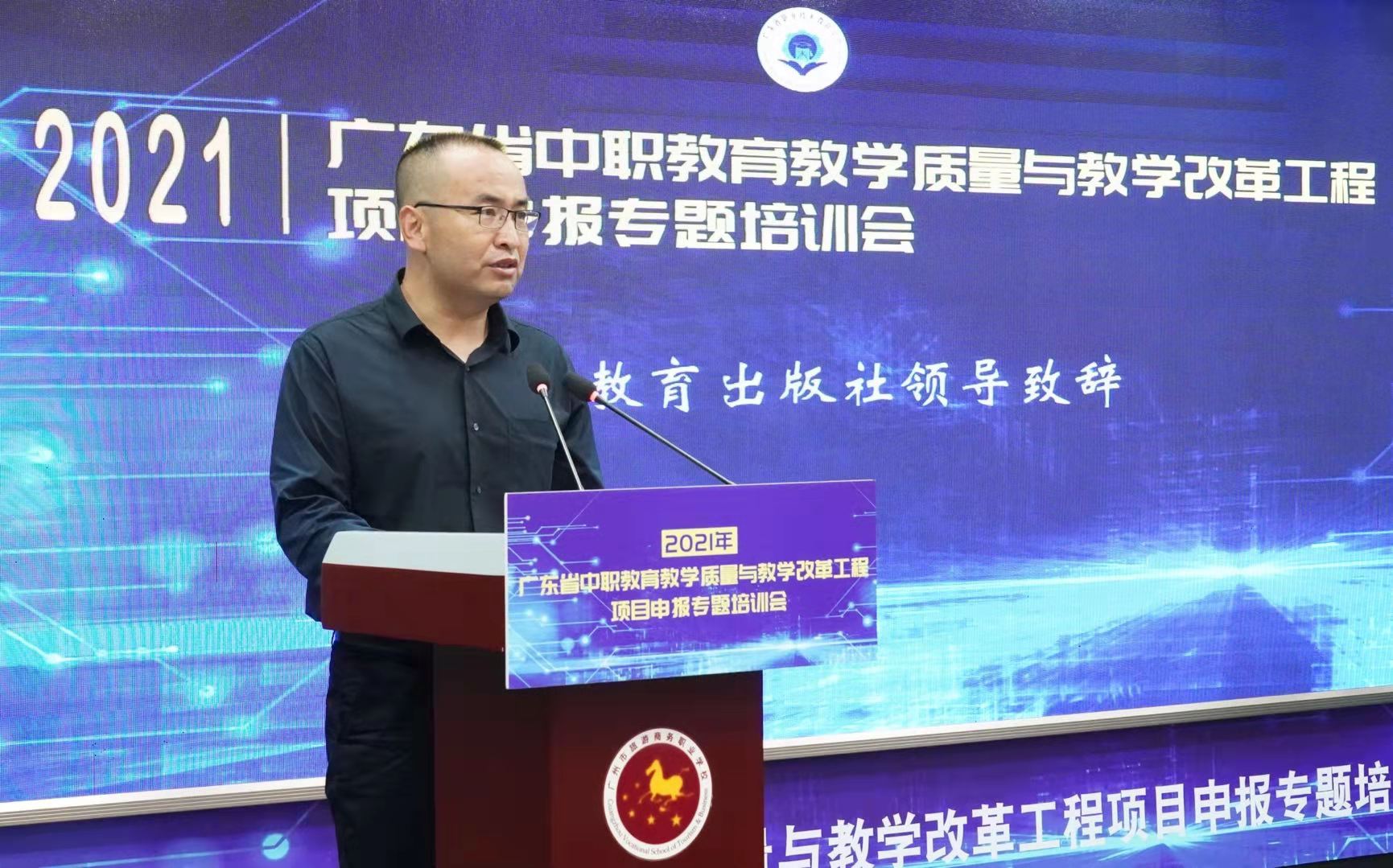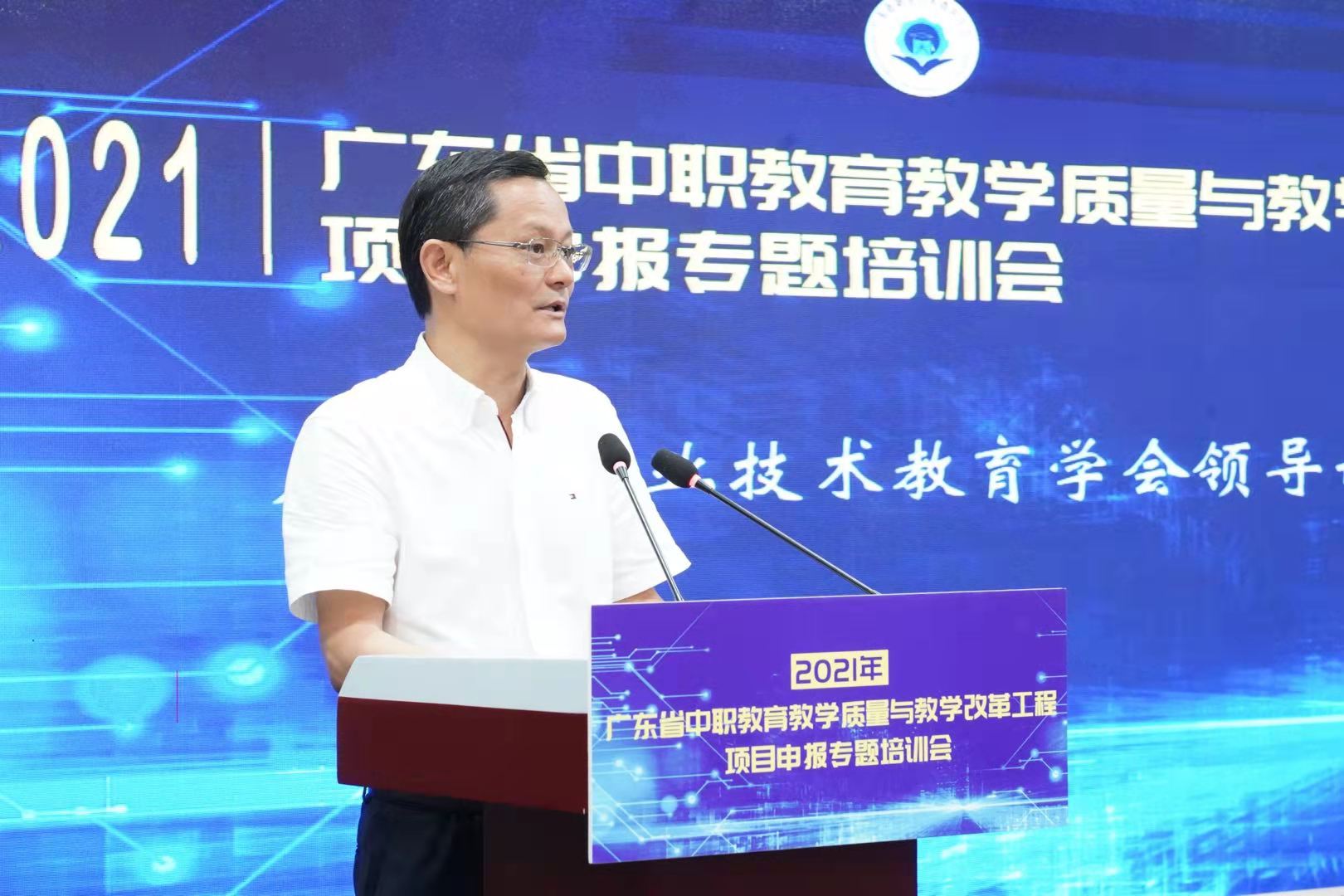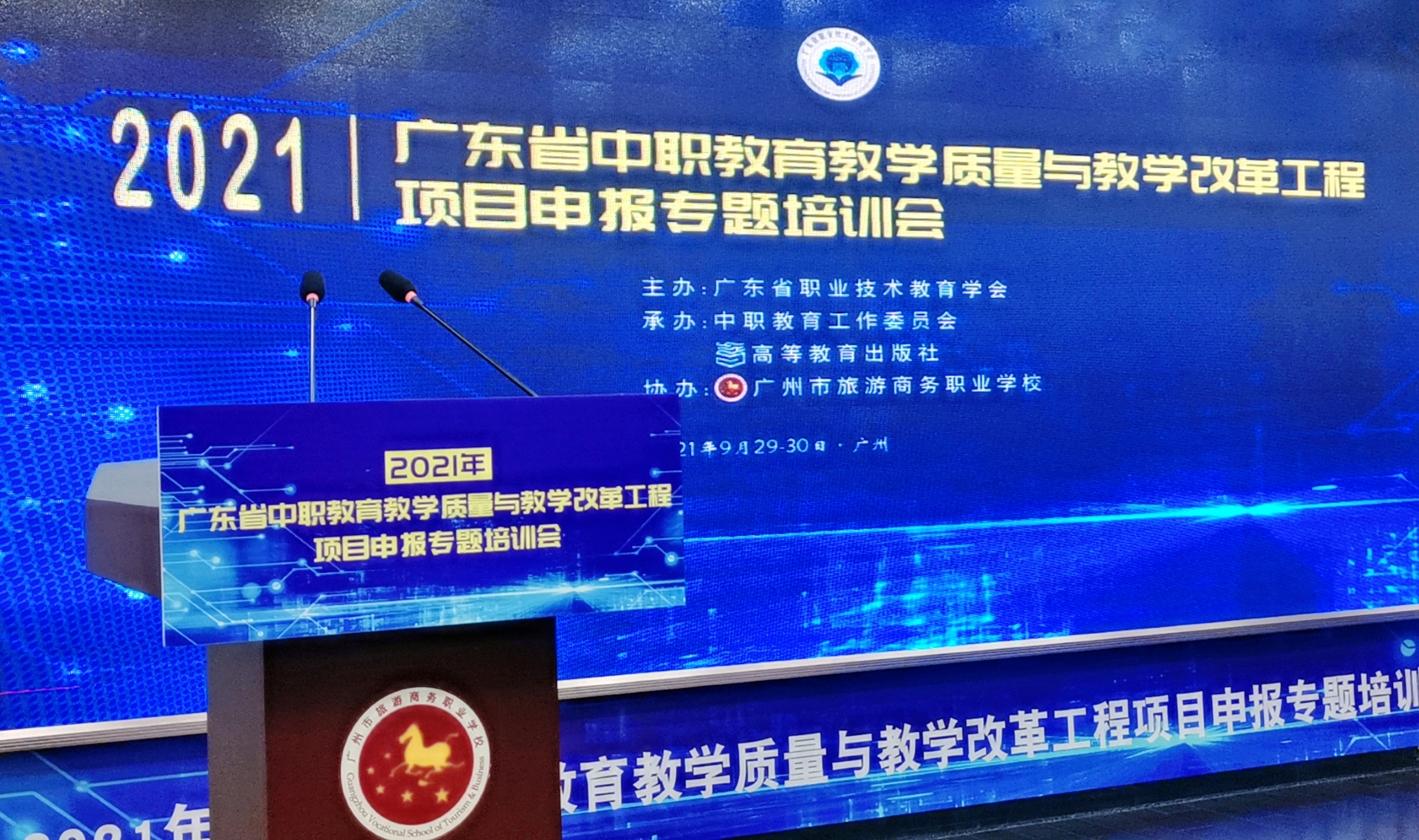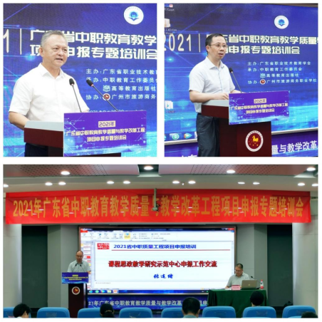 9月29-30日,2021年广东省中职教育教学质量与教学改革工程项目申报专题培训会以“线下会议+线上直播”相结合的方式举行。本次培训会由广东省职业技术教育学会主办,学会中职教育工作委员会、高等教育出版社联合承办,广州市旅游商务职业学校协办,旨在深入贯彻全国职教大会精神,落实《职业教育提质培优行动计划(2020—2023年)》重点任务,配合省教育厅2021年省中职质量工程项目申报工作,推动我省职业教育高质量发展。广东省职业技术教育学会会长杜安国,广东省教育厅职业教育与终身教育处副处长王瑜,广州市教育局职业与成人教育处处长李营,广东省职业技术教育学会中职教育工作委员会主任、广州市旅游商务职业学校校长吴浩宏,高等教育出版社中职教育事业部副主任肖子东,广东省职业技术教育学会秘书长柯贞金等领导出席会议。广东省各地市教育局、地市职教学会广泛发动,各中等职业学校积极组织教师集中观看学习,线上、线下参培人数超4000人。
