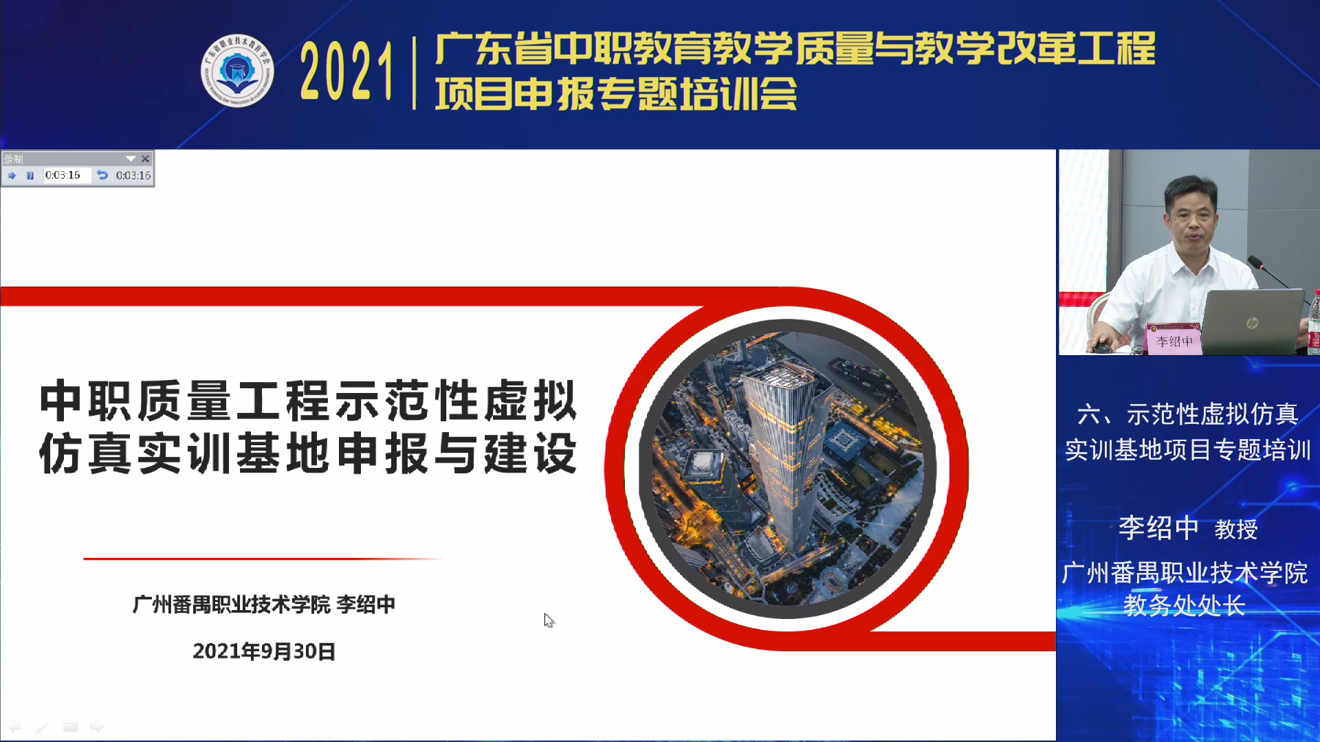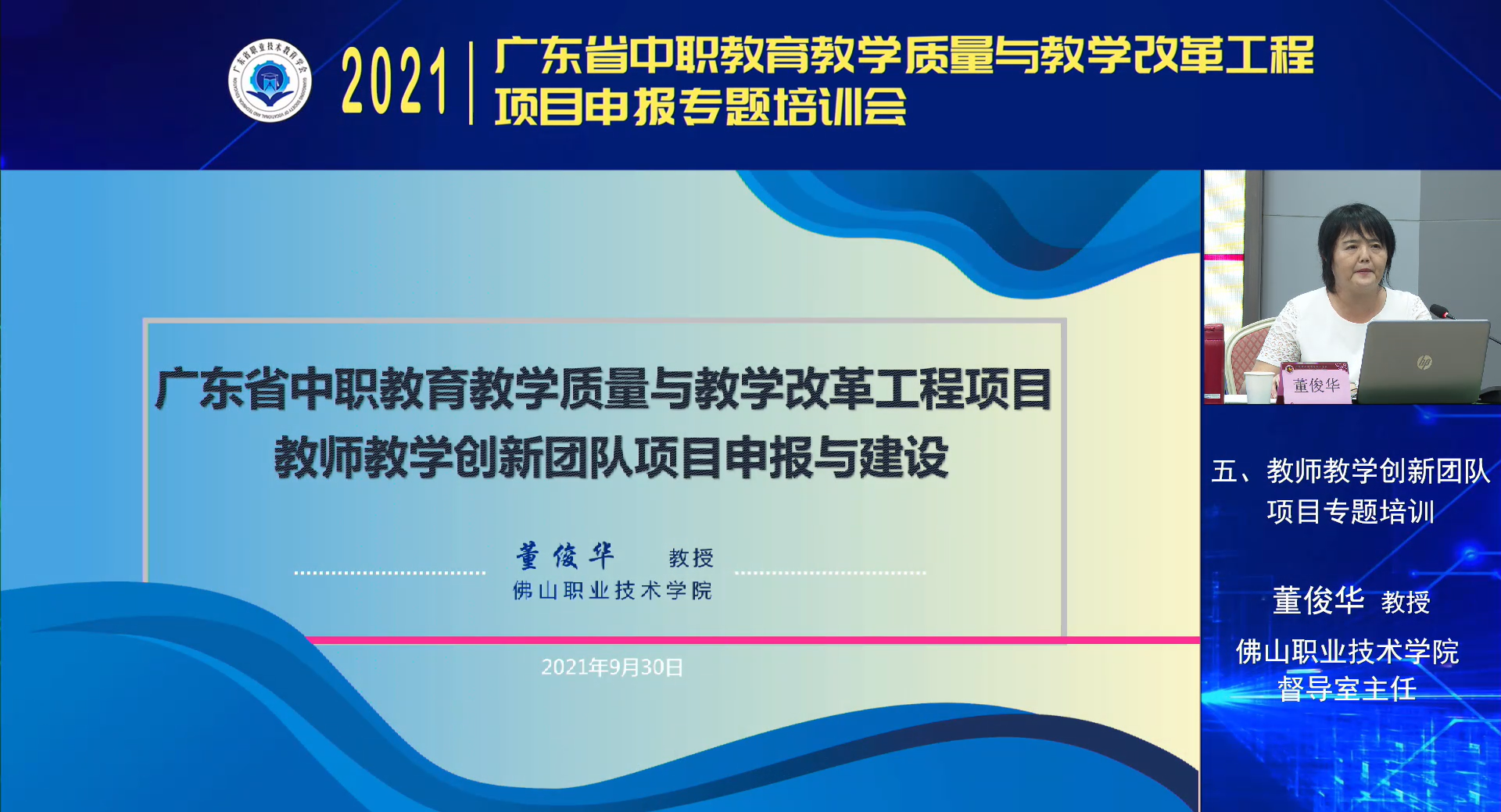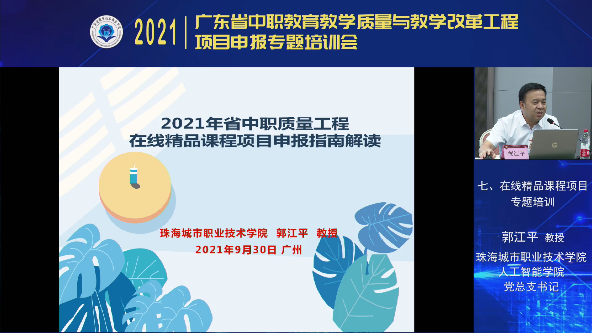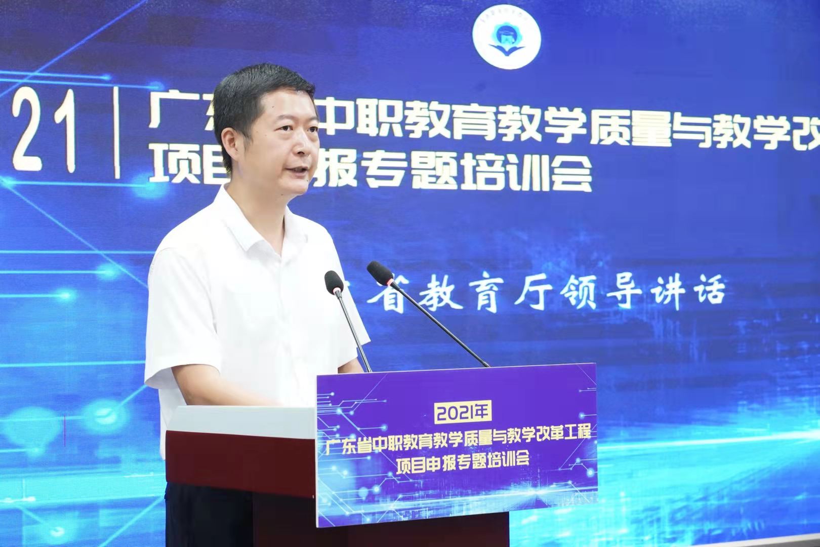 9月29-30日,2021年广东省中职教育教学质量与教学改革工程项目申报专题培训会以“线下会议+线上直播”相结合的方式举行。本次培训会由广东省职业技术教育学会主办,学会中职教育工作委员会、高等教育出版社联合承办,广州市旅游商务职业学校协办,旨在深入贯彻全国职教大会精神,落实《职业教育提质培优行动计划(2020—2023年)》重点任务,配合省教育厅2021年省中职质量工程项目申报工作,推动我省职业教育高质量发展。广东省职业技术教育学会会长杜安国,广东省教育厅职业教育与终身教育处副处长王瑜,广州市教育局职业与成人教育处处长李营,广东省职业技术教育学会中职教育工作委员会主任、广州市旅游商务职业学校校长吴浩宏,高等教育出版社中职教育事业部副主任肖子东,广东省职业技术教育学会秘书长柯贞金等领导出席会议。广东省各地市教育局、地市职教学会广泛发动,各中等职业学校积极组织教师集中观看学习,线上、线下参培人数超4000人。