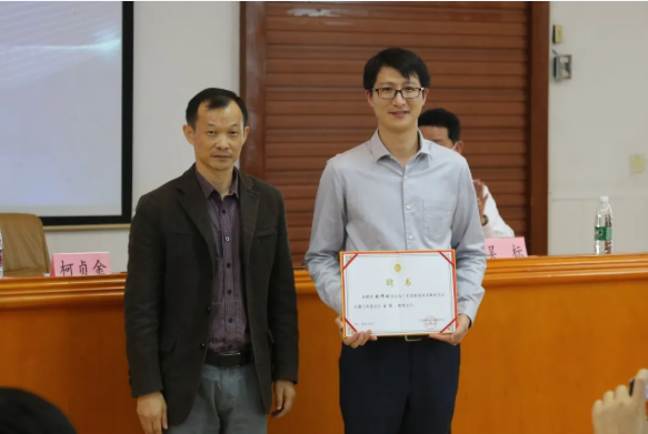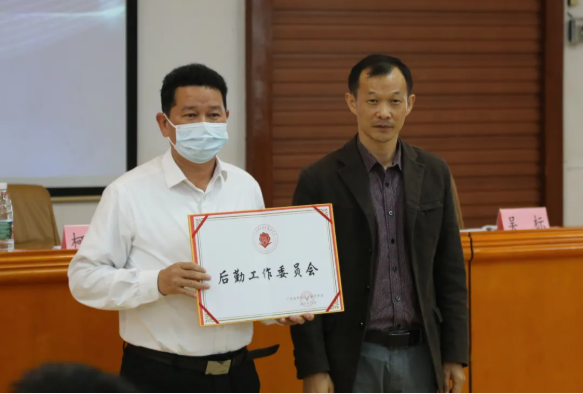 接下来,由广东省职业技术教育学会柯贞金秘书长向后勤工作委员会各位委员颁发后勤工作委员会证书和委员聘书。