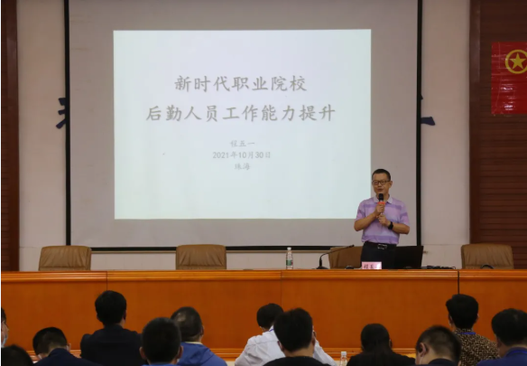 在研讨会上,省教厅后勤处处长程五一为参会人员作主题为“新时代职业院校后勤人员工作能力的提升”的专题报告。