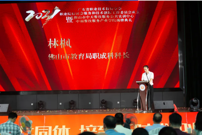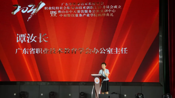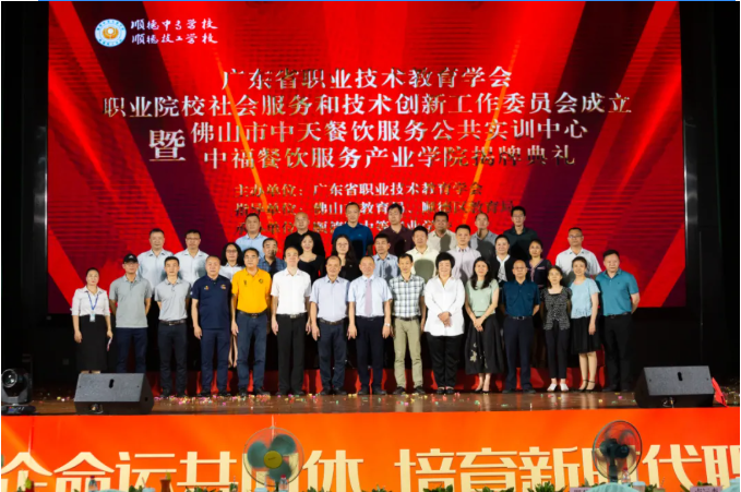 5月14日上午,广东省职业技术教育学会分支机构——职业院校社会服务和技术创新工作委员会成立大会在顺德中专举行。学会秘书长柯贞金、办公室主任谭汝长,佛山市教育局职成科副科长林枫,顺德区教育局副局长罗劲柏、职成科科长杨少琴,顺德区饮食协会会长、佛山市聚福山庄饮食管理有限公司董事长卢远森,顺德区厨师协会会长连庚明、副会长张臻,广东天悦餐饮管理集团董事长、猪肉婆私房菜品牌创始人吴素芬等领导嘉宾出席成立大会。