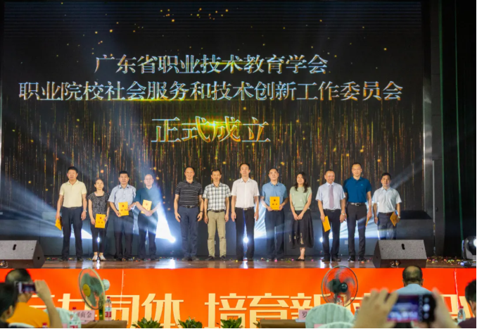 柯贞金为委员会成员单位颁发聘书,他介绍,广东省职业技术教育学会成立职业院校社会服务和技术创新工作委员会,是为搭建一个深化校企合作、增强社会服务功能、提升技术创新能力的平台。