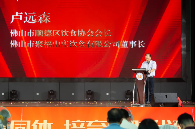 顺德区饮食协会会长、佛山市聚福山庄饮食管理有限公司董事长卢远森致辞
