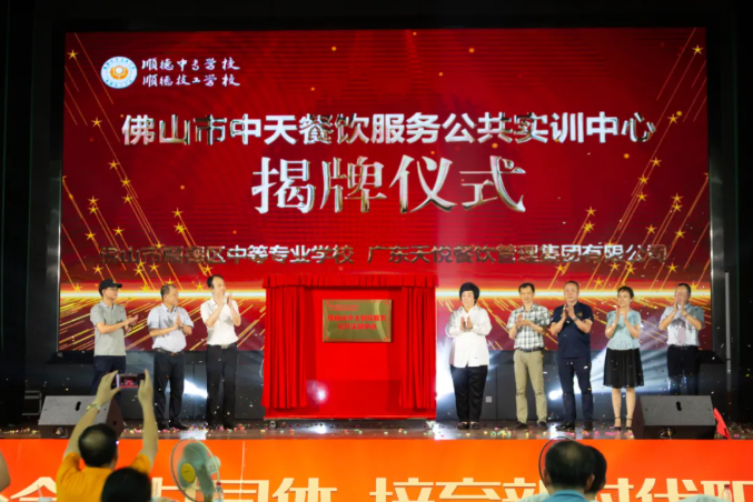 随后,顺德中专与广东天悦餐饮管理集团、佛山市聚福山庄饮食管理有限公司联手,以混合所有制方式组建的中天餐饮公共实训中心、中福餐饮产业学院,同步举行揭牌仪式。这标志着顺德中专学校校企携手产教融合向高层次更宽领域迈进。合作平台将发挥企业主体作用,推动校企共建基地、共育人才,实施“校企循环、工学交替”现代学徒制育人模式,致力培养高素质技术技能型人才,助力地区餐饮产业高质量发展。