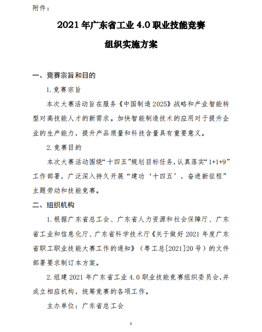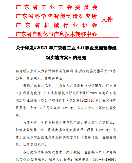【广东省自动化与信息技术转移中心】关于印发《2021年广东省工业4.0职业技能竞赛组织实施方案》的通知