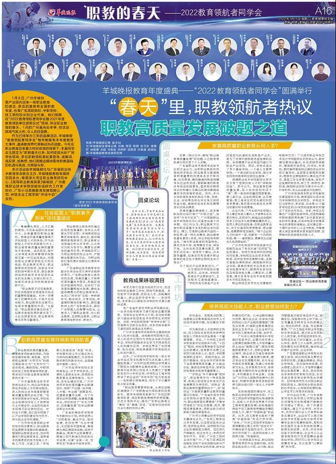 “职业教育需要领航者,大湾区战略机遇提供了广东职教成为领航者的政策条件。期待羊城晚报能够为广东地区职教领航者、湾区职教发展提供思想碰撞、交流分享的平台,推动广东职业教育从‘高地’向‘高峰’迈进。”这是参加活动的与会代表的共同心声。
