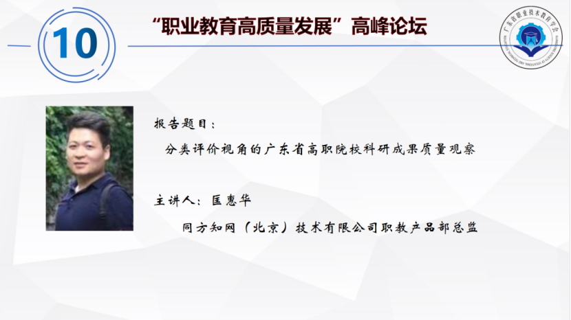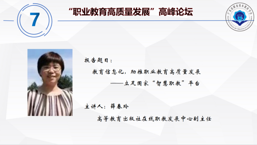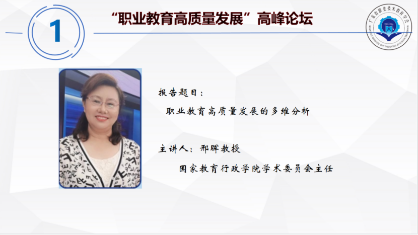 高峰论坛上,国家教育行政学院学术委员会主任邢晖教授、北京教育科学研究院王春燕研究员、北京师范大学教育学部赵志群教授及广东职业院校、企业代表共十位专家,围绕“职业教育高质量发展”主题,从增强职业教育适应性、职教人才培养模式创新、现代学徒制发展、教育信息化等不同角度作出内容充实、观点深刻的专题报告,为听众带来了一场精彩纷呈的学术盛宴。各单位积极组织学习,在线参会人数达1200余人。