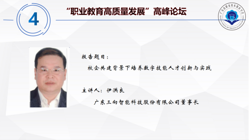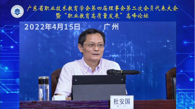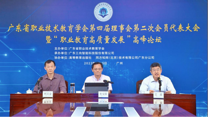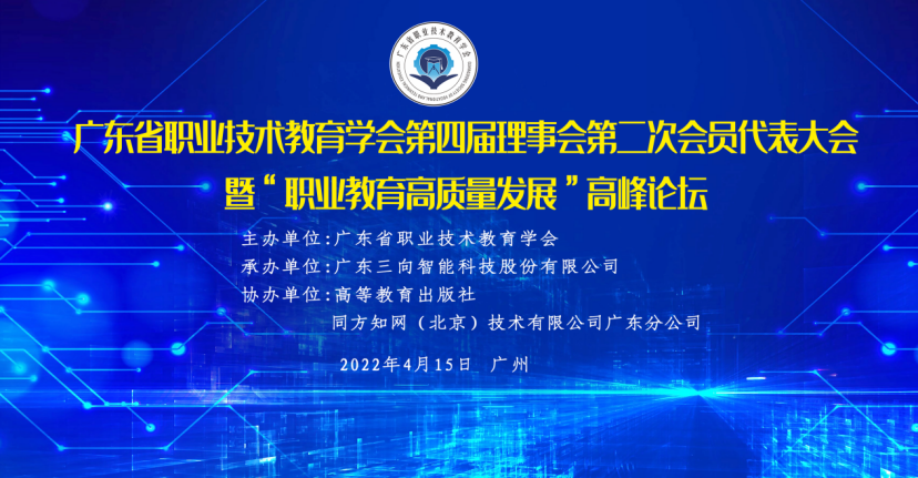 2022年4月15日,广东省职业技术教育学会第四届理事会第二次会员代表大会暨“职业教育高质量发展”高峰论坛在线上隆重举行。会议由广东省职业技术教育学会主办,广东三向智能科技股份有限公司承办,高等教育出版社、同方知网(北京)技术有限公司广东分公司协办。学会会长杜安国、副会长江洧、秘书长柯贞金出席会议现场,会议由副会长江洧主持。