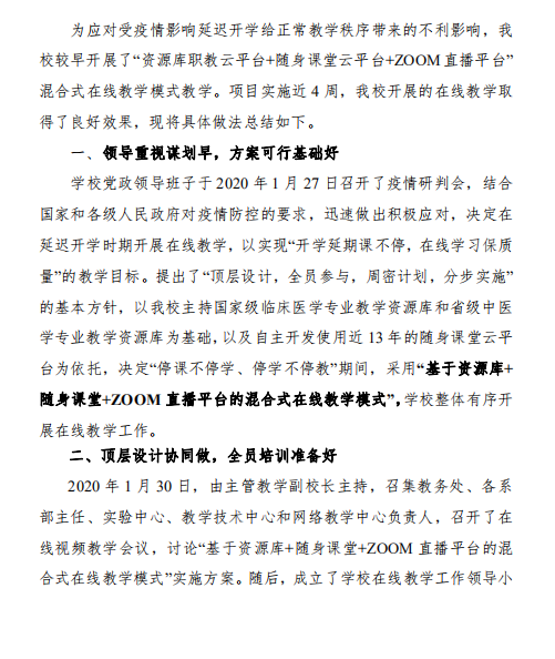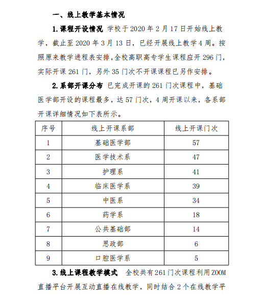 一、肇庆医学高等专科学校线上教学工作报告