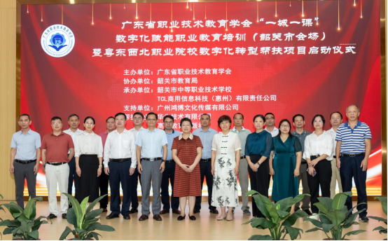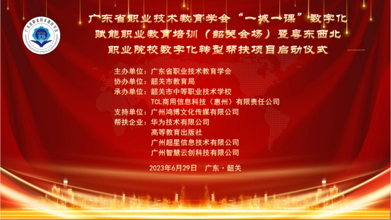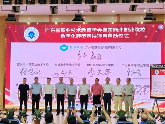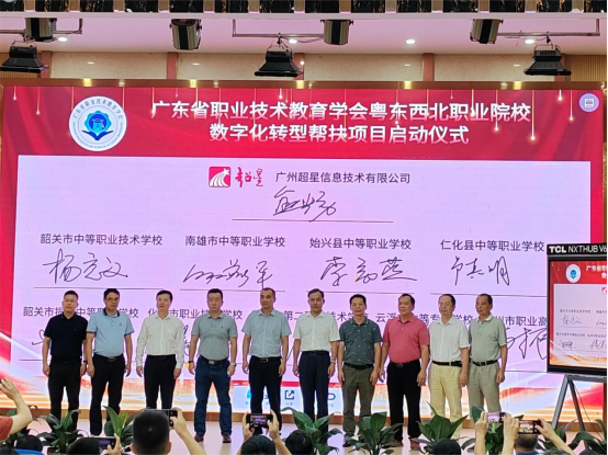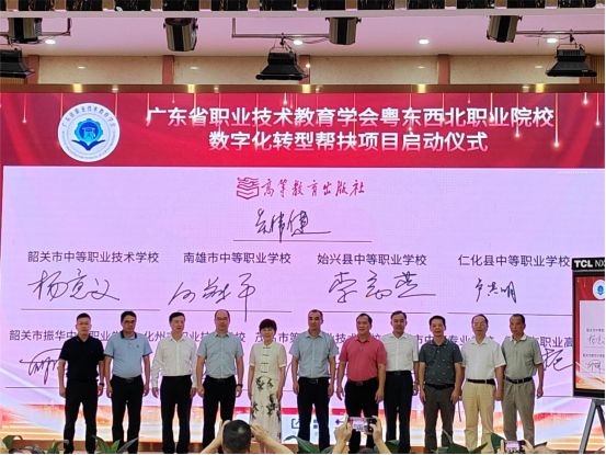 2023年6月29日,广东省职业技术教育学会“一城一课”数字化赋能职业教育培训暨粤东西北职业院校数字化转型帮扶项目启动仪式在韶关市中等职业技术学校举办。帮扶项目支持企业与接受帮扶学校领导现场签约;广东省职业技术教育学会会长杜安国,韶关市教育局副局长梁丽娟、四级调研员朱俊英,职业与成人教育科科长李国全,茂名市教育局高等与职业教育科主任林鹏森,云浮市教育局职业与成人教育科主任黄红飞,湛江市教育局职业教育与终身教育科四级主任科员邓敏仪等出席启动仪式,见证签约。