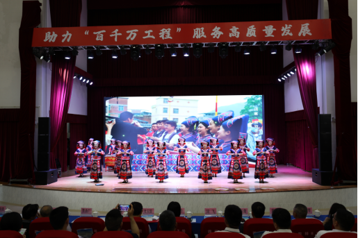 连山壮族瑶族自治县职业技术学校学生为参会嘉宾带来非遗民族歌舞表演。一曲《壮家迎客歌》不仅唱出了壮乡人民的热情好客,更唱出了对美好生活的热爱与向往;《鼓韵留声》以瑶族小长鼓舞展现了瑶族人民在长期游耕迁徙中创造的绚丽多彩的文化。