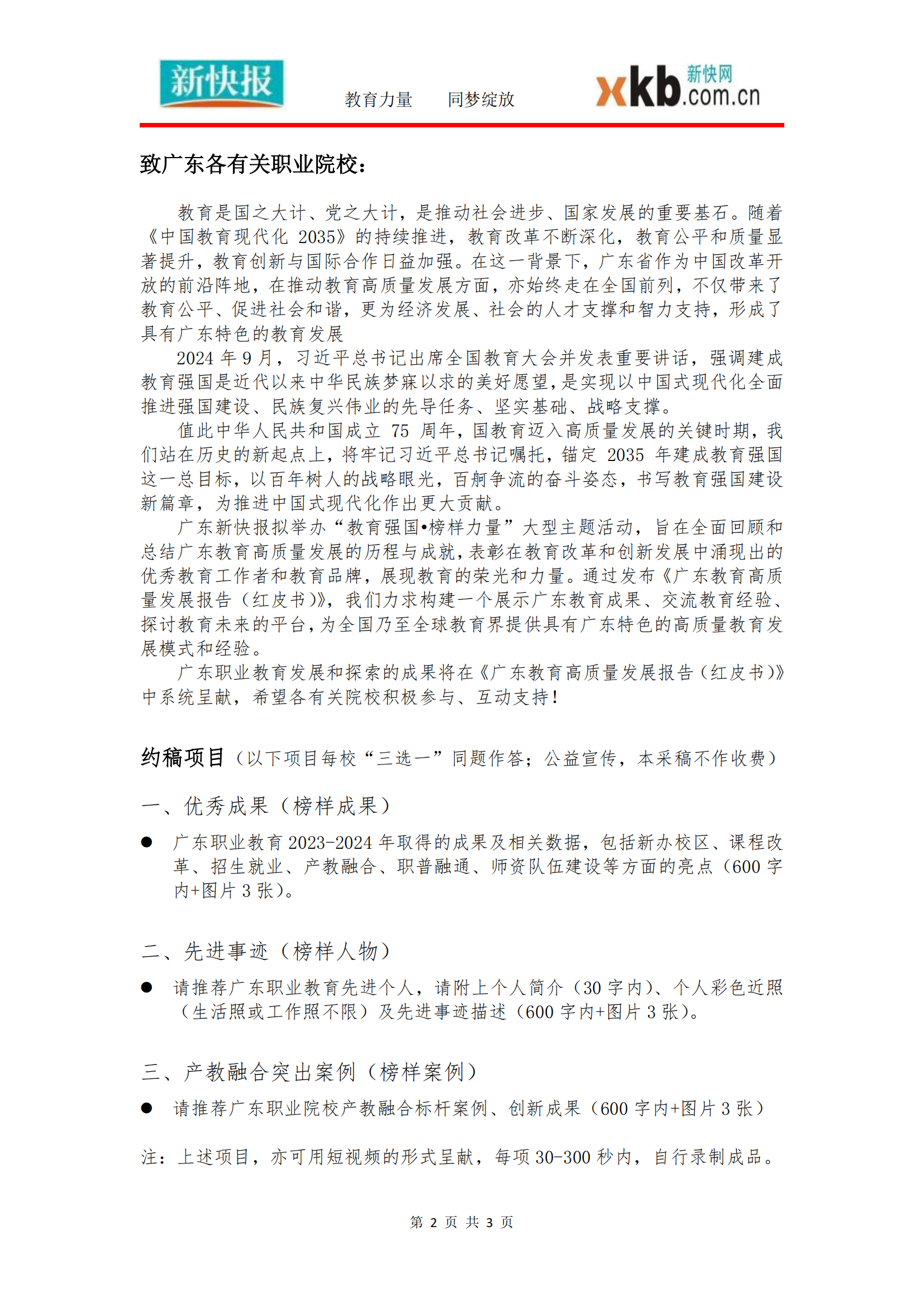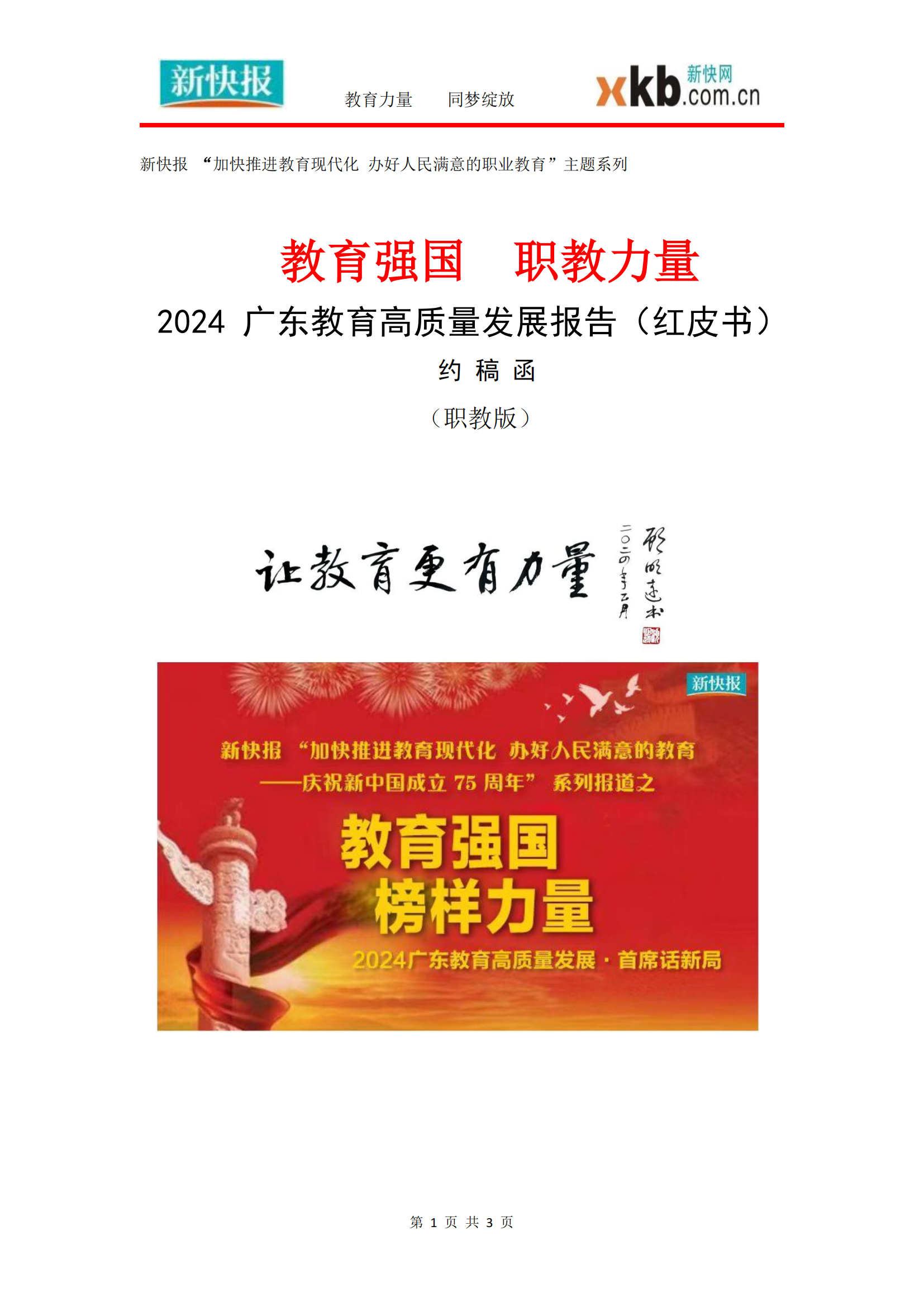转发 | 教育强国 职教力量——2024广东教育高质量发展报告(红皮书)约稿函(职教版)