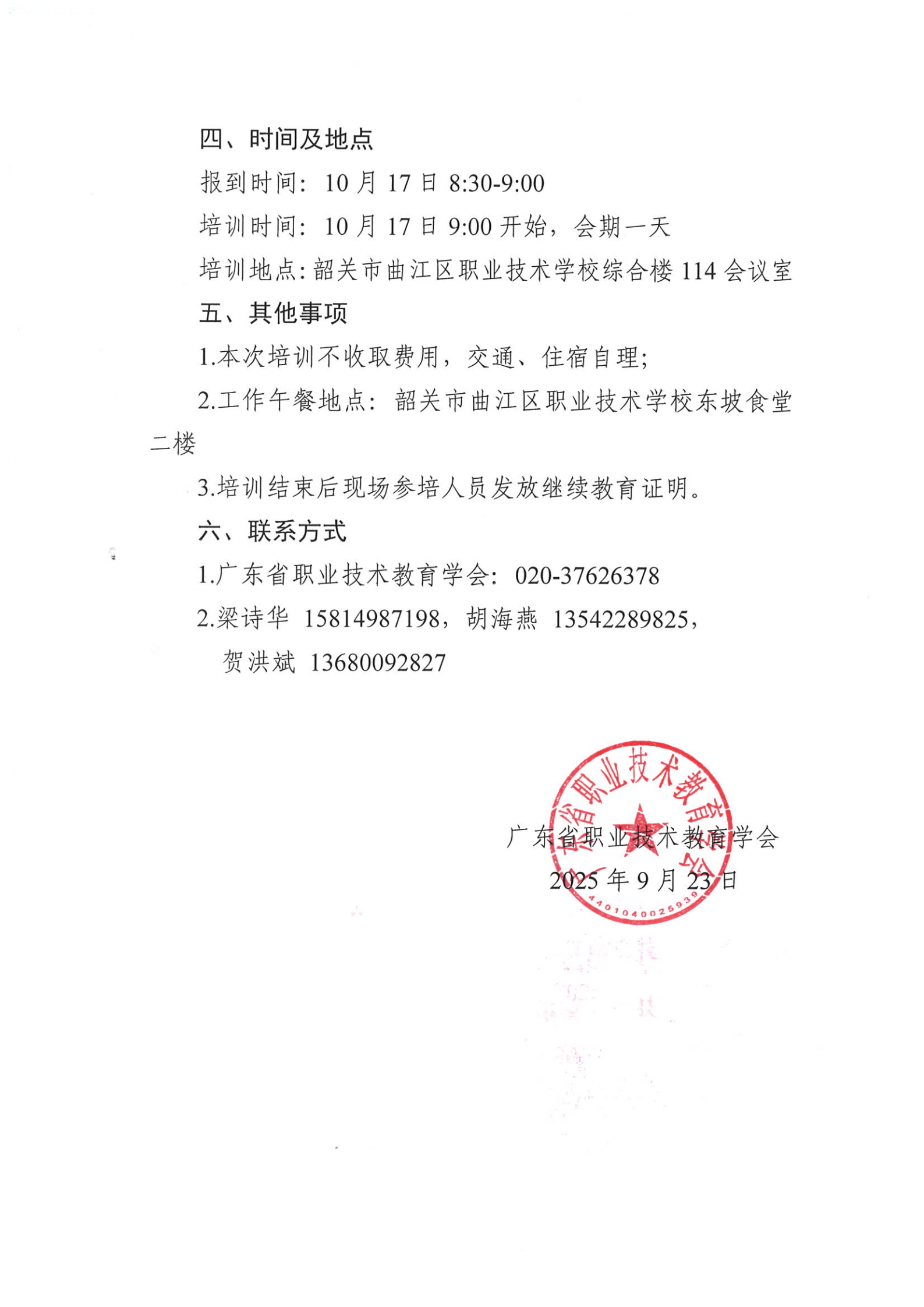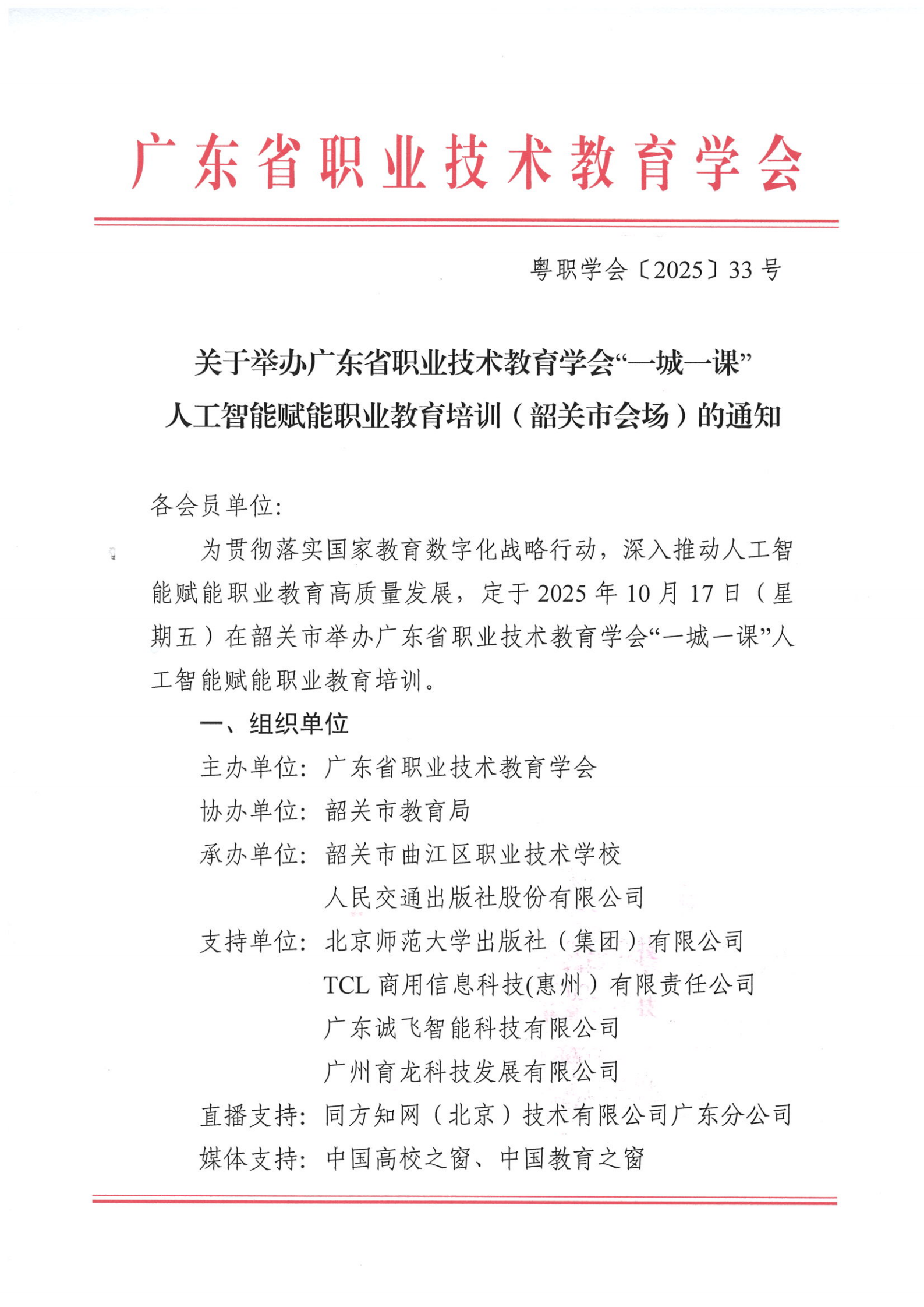 附件:关于举办广东省职业技术教育学会“一城一课”人工智能赋能职业教育培训(韶关市会场)的通知