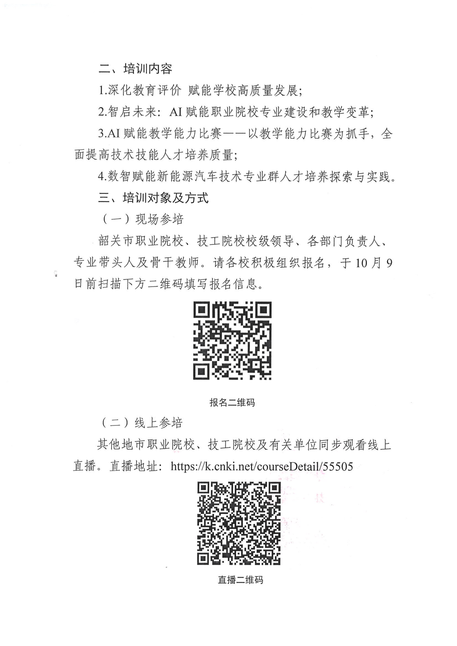 关于举办广东省职业技术教育学会“一城一课”人工智能赋能职业教育培训(韶关市会场)的通知