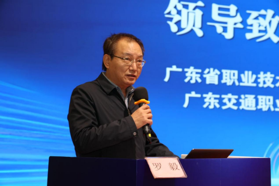 受杜安国会长委托,广东省职业技术教育学会副会长、广东交通职业技术学院校长罗毅出席开班仪式并致辞。他指出,当前我国正处于加快发展新质生产力,构筑发展新格局的关键时期,人工智能技术正在深刻重塑职业教育的生态体系。中职学校应当把握历史机遇,从教学体系、数字化转型顶层设计、师资队伍建设等多个维度推进深度变革。