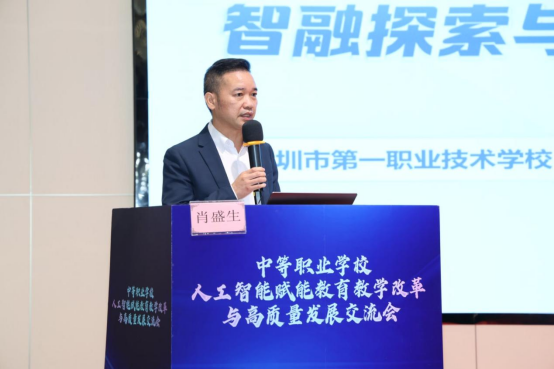 深圳市第一职业技术学校肖盛生校长以构建“教管产创”智慧生态为主题,分享了深圳一职在AI赋能教育高质量发展上的探索与实践。深圳一职以“人工智能赋能职业教育高质量发展”为核心方向,坚持“课程为根、平台为骨、智库为脑、智能体为手、算力为心”的建设理念,不断深化AI技术在教学、管理、科研与创新中的融合应用。学校也将继续携手华为、腾讯等企业,共同打造可推广的AI产教融合新样板,培养具备复合能力和创新精神的高素质技术技能人才。