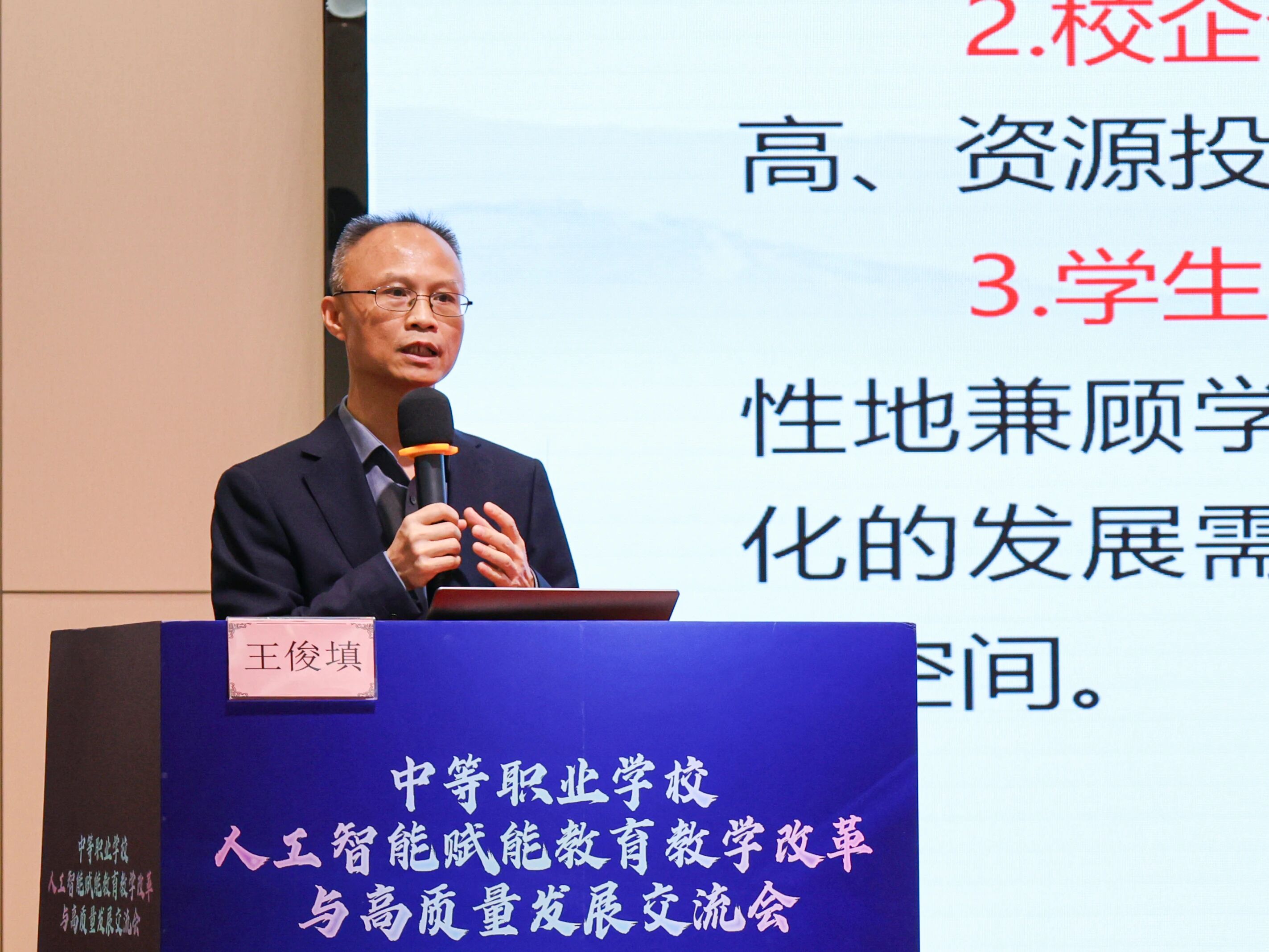 广东省职业技术教育学会副会长、学会中职教育工作委员会主任、广州市旅游商务职业学校校长张立波强调,面对人工智能带来的教育变革,中职学校需要实现三个转变:从技术工具应用到教育理念重构、从单点突破到系统变革、从学校自主到产教协同。他特别指出,人工智能赋能中职教育不仅要关注技术创新,更要注重育人本质,构建"技术赋能、内涵发展、特色创新"的新发展格局。