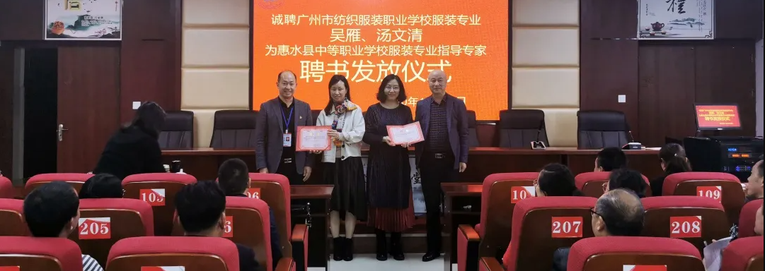 此次帮扶活动,广州纺校以专业教学、学生技能竞赛为主题与贵州省惠水职业学校进行了深度交流,将有效促进当地职业教育专业教学水平提升。此次活动得到了惠水县教育局、惠水职业学校的全力支持和高度评价,期间县教育局领导为吴雁、汤文清两位老师颁发了惠水职业学校服装专业指导专家聘书。