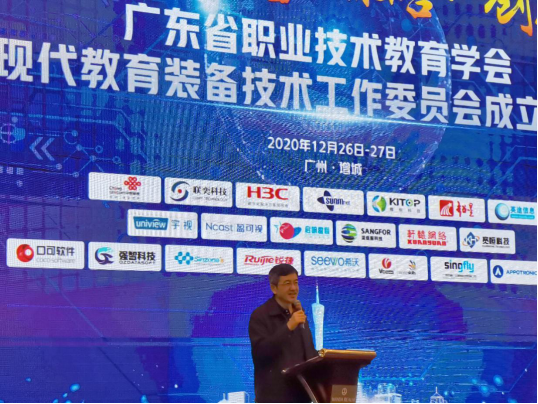 12月27日,广东省职业技术教育学会现代教育装备技术工作委员会成立大会在广州增城顺利召开。广东省职业技术教育学会秘书长、法人代表柯贞金代表学会莅临本次大会并致辞,学会副会长冯子川、办公室主任谭汝长出席会议。学会副会长、广东水利电力职业技术学院校长江洧任现代教育装备技术工作委员会主任,并在大会上作工作报告;学会副会长、广州铁路职业技术学院校长马仁听,学会理事、东莞市经济贸易学校校长叶朝桢,华南理工大学大学首席信息官陆以勤等领导、专家及部分企业会员分别作主旨演讲。