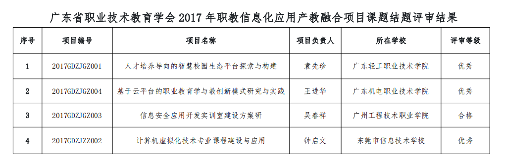 附件:广东省职业技术教育学会2017年职教信息化应用产教融合项目课题结题评审结果