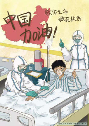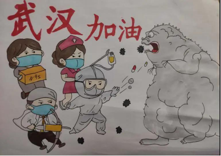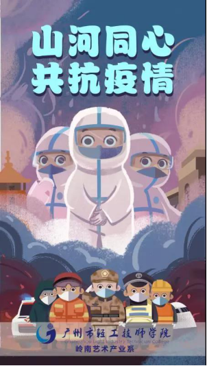 岭南艺术产业系的学子们,也各显专业所长,制作出手抄报、漫画、海报等,表达着心中对疫情的思考,对此场战役的同舟共济之心。
